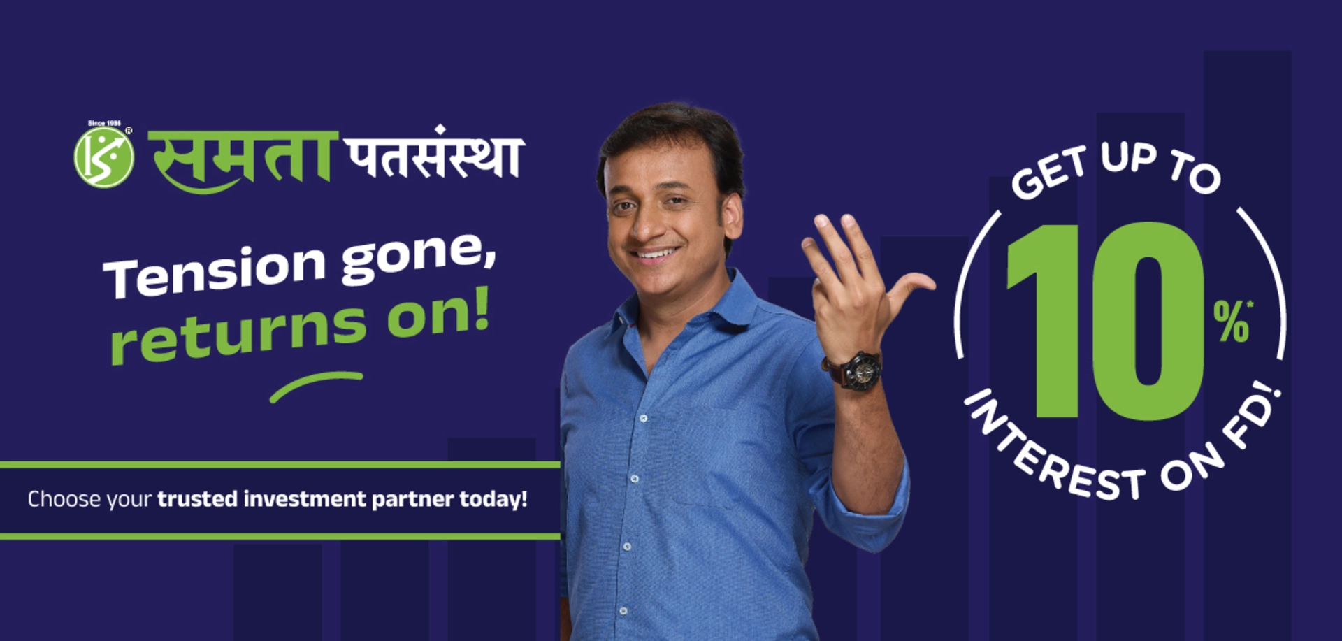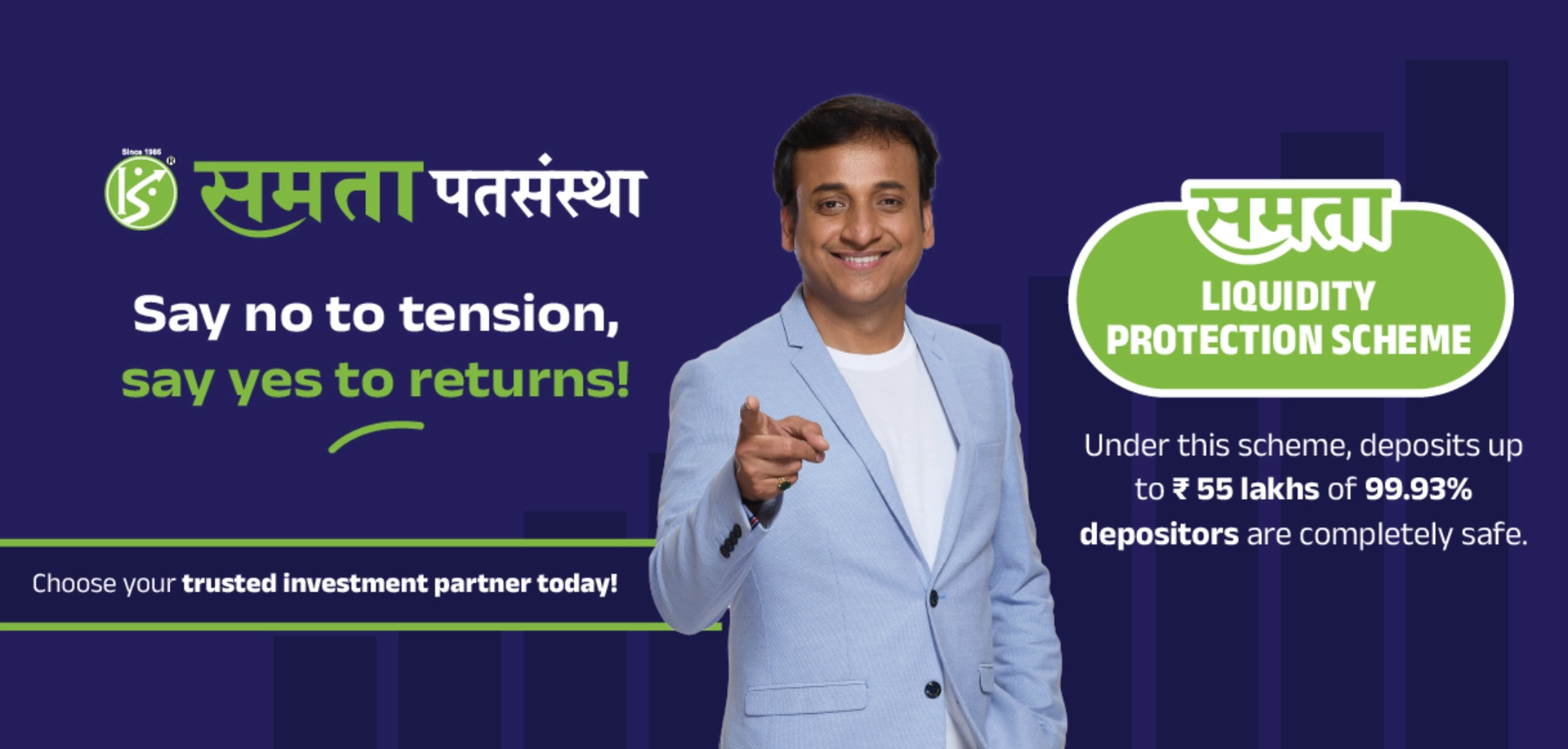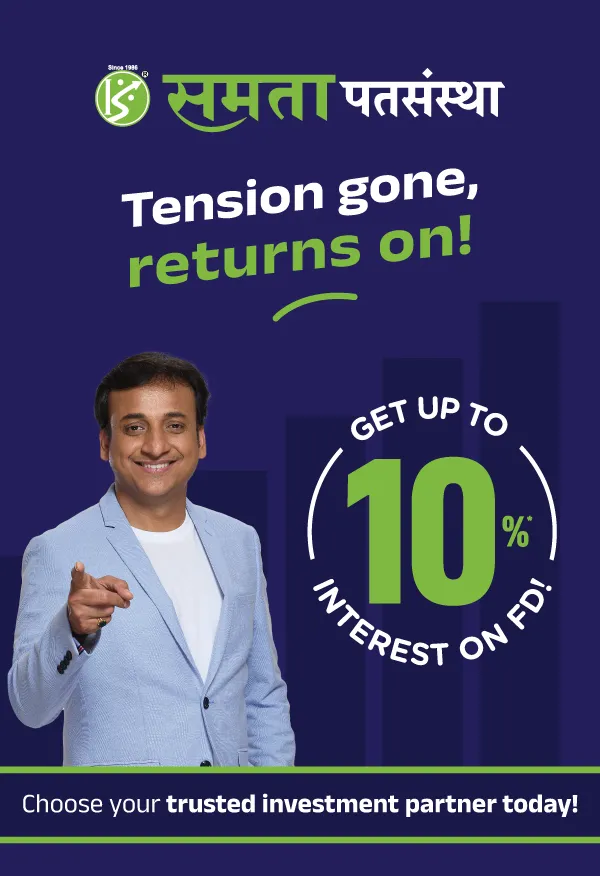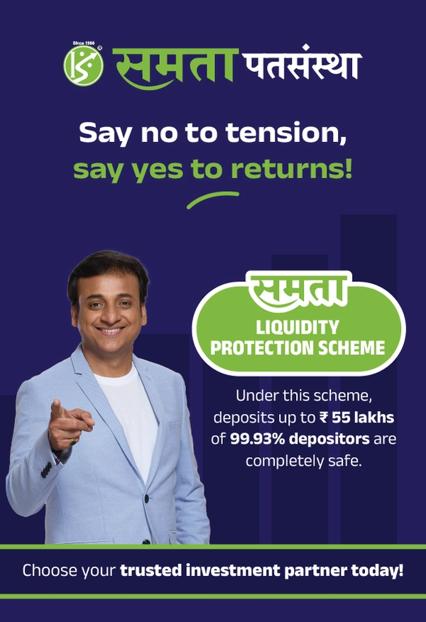 Maharashtra is the epicentre of co-operative movement and for more than 39 years, Samata Civil Credit Co-operative Society has been the torchbearer of this movement. Headquartered in Kopargaon and with presence in 20+ areas, Samata continues to nurture people’s trust by giving them big and consistent returns on their hard-earned money. Along the way, we have also built a reputation of giving people wise financial advice and services, while also providing them modern services in line with the evolving banking sector. At Samata, we are committed to strengthening people’s trust in us, every day, forever.