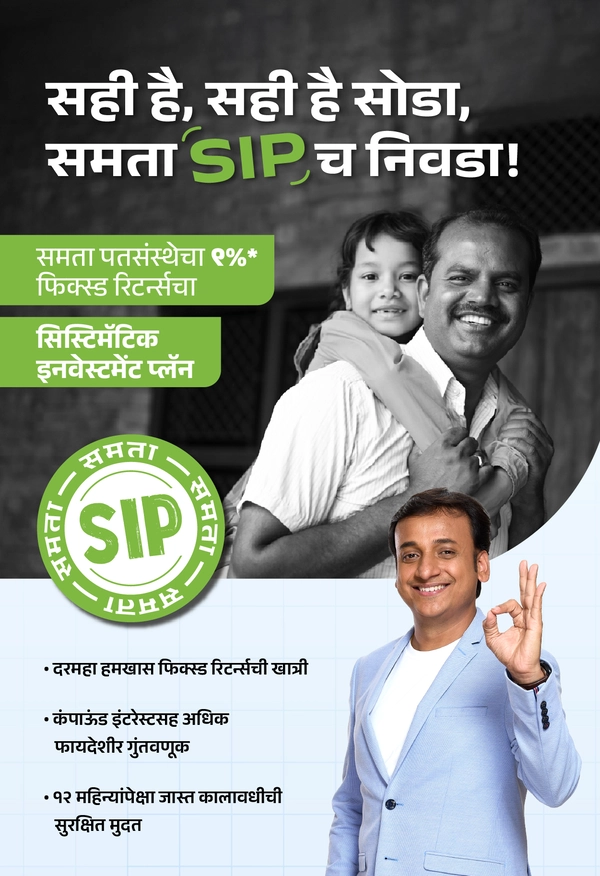आज घेतलेले छोटे व शिस्तबद्ध पाऊल उद्या मोठ्या आर्थिक टप्प्यांत रूपांतरित होऊ शकते. समता SIP द्वारे आपण दरमहा सोप्या रकमेपासून गुंतवणूक करून दीर्घकालीन संपत्ती निर्माण करू शकता. कंपाउंडिंगची ताकद आणि रुपये-कॉस्ट अॅव्हरेजिंगमुळे सातत्यपूर्ण वाढ मिळते. कौटुंबिक ध्येये, निवृत्ती किंवा भविष्यातील स्वप्ने असोत—आपली गुंतवणुकीची वाटचाल इथूनच सुरू होते.
