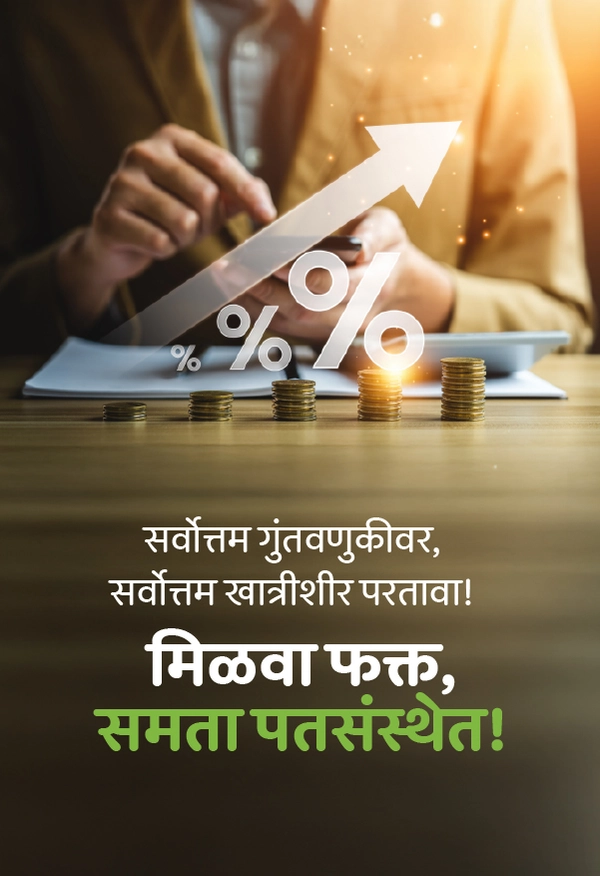 आपला व्यवसाय जितका गतिमान आहे, तितकाच विश्वासार्ह भागीदार त्याला हवा. समता करंट खाते हे कंपन्या, भागीदारी फर्म, ट्रस्ट आणि संस्थांसाठी खास डिझाइन केलेले आहे. सोपी कागदपत्रे आणि व्यवहारांमध्ये लवचिकता यामुळे दैनंदिन कामकाज अधिक सुलभ होते. आपण आपल्या व्यवसायावर लक्ष केंद्रित करा, आर्थिक व्यवस्थापन आम्ही सांभाळतो.