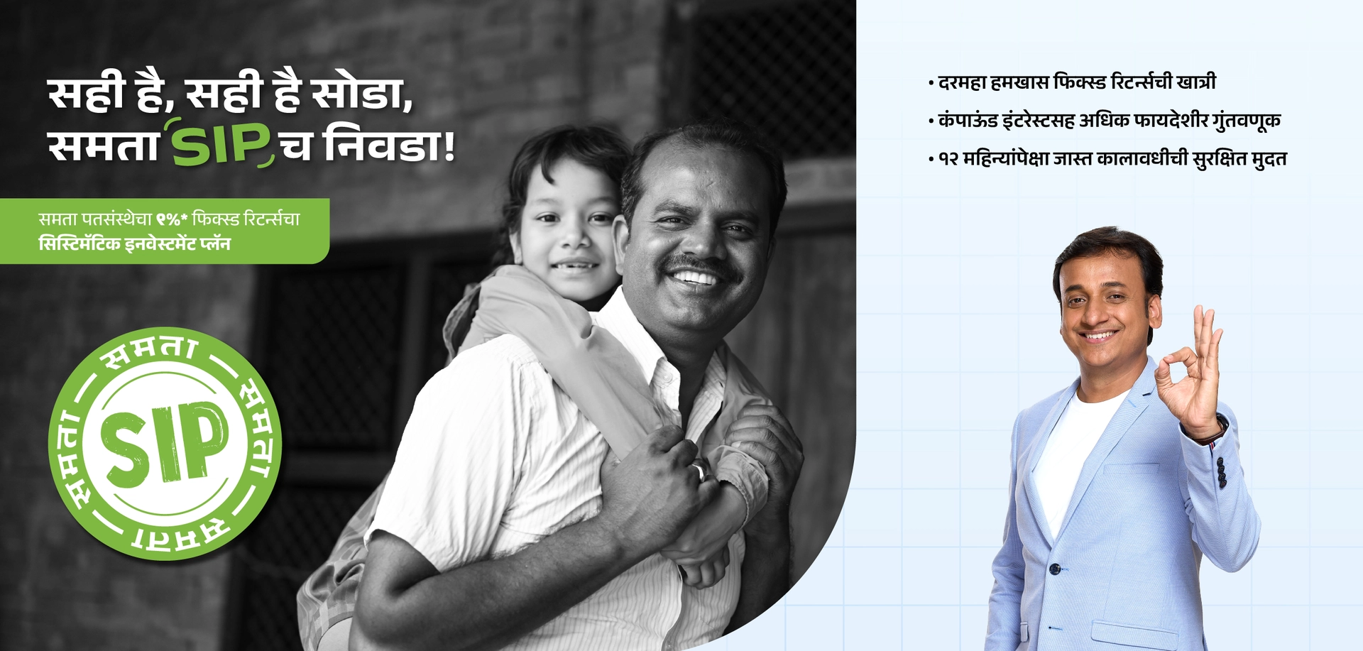 आज घेतलेले छोटे व शिस्तबद्ध पाऊल उद्या मोठ्या आर्थिक टप्प्यांत रूपांतरित होऊ शकते. समता SIP द्वारे आपण दरमहा सोप्या रकमेपासून गुंतवणूक करून दीर्घकालीन संपत्ती निर्माण करू शकता. कंपाउंडिंगची ताकद आणि रुपये-कॉस्ट अॅव्हरेजिंगमुळे सातत्यपूर्ण वाढ मिळते. कौटुंबिक ध्येये, निवृत्ती किंवा भविष्यातील स्वप्ने असोत—आपली गुंतवणुकीची वाटचाल इथूनच सुरू होते.